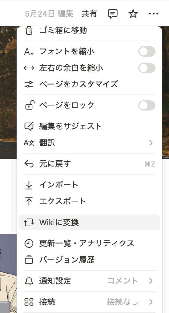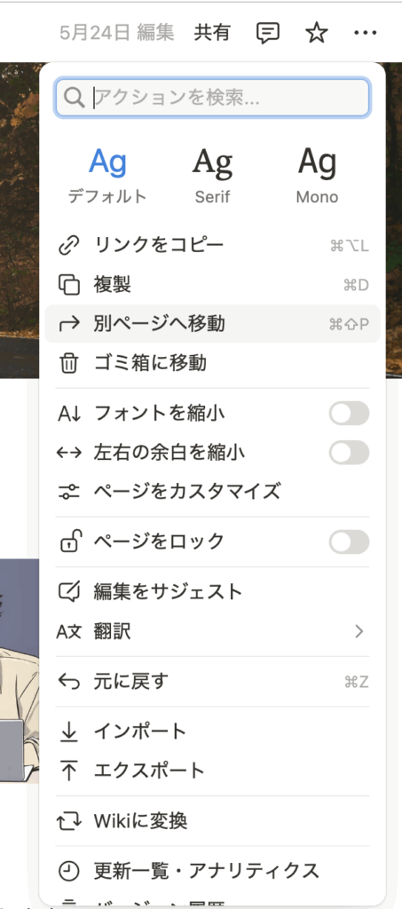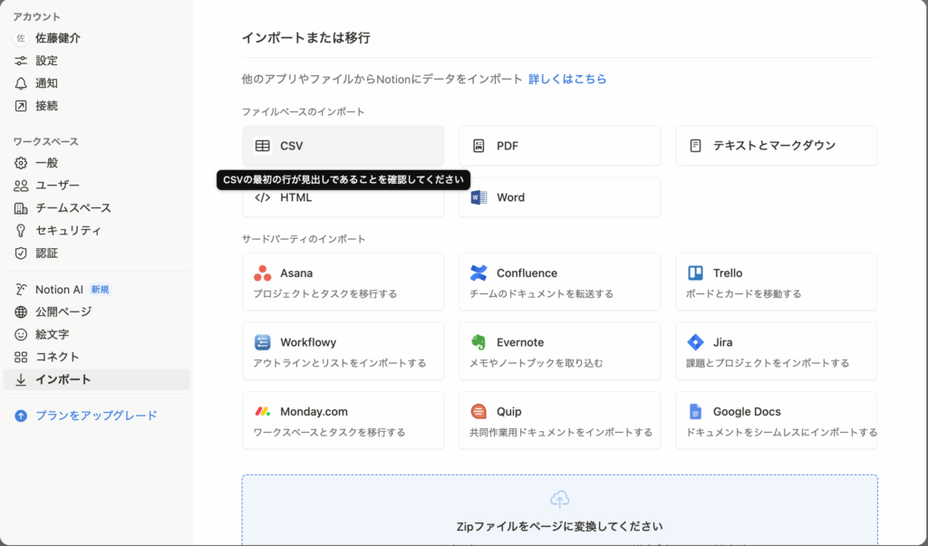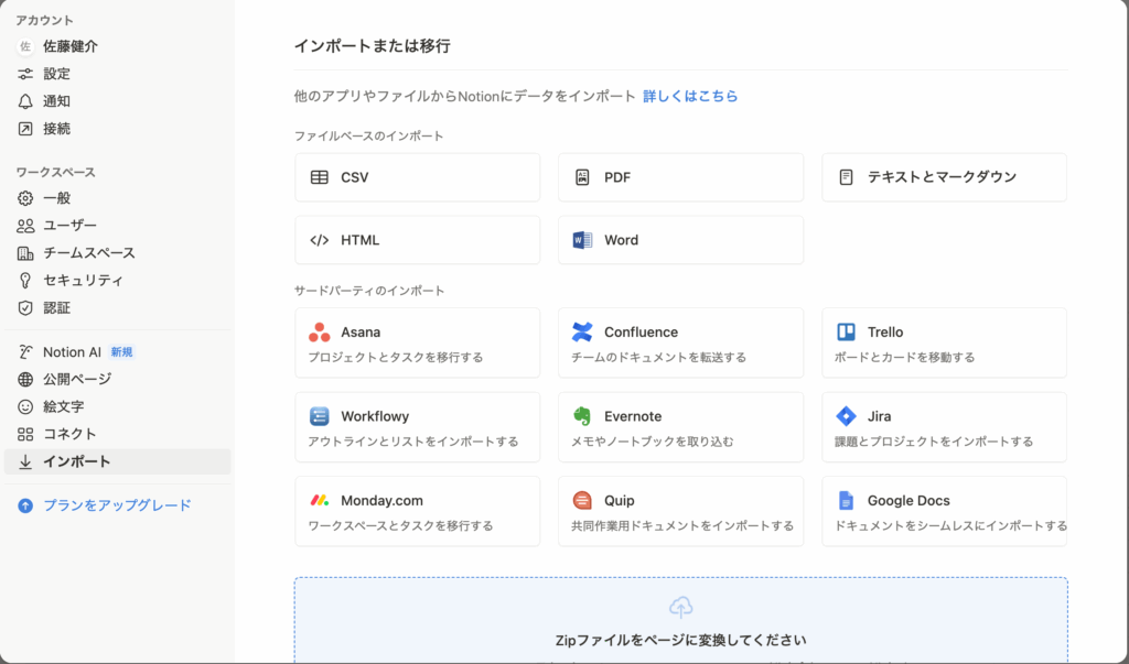 Notionページ右上の「・・・」から「インポート・エクスポート」が選択できます!