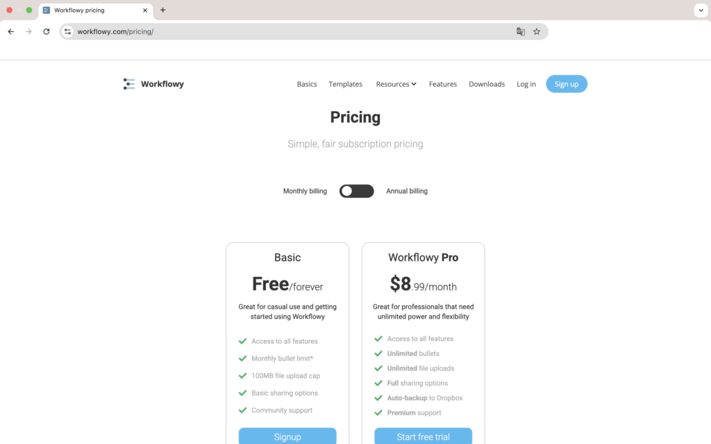 Workflowyは基本無料で使えますが、Proプランは有料になります。