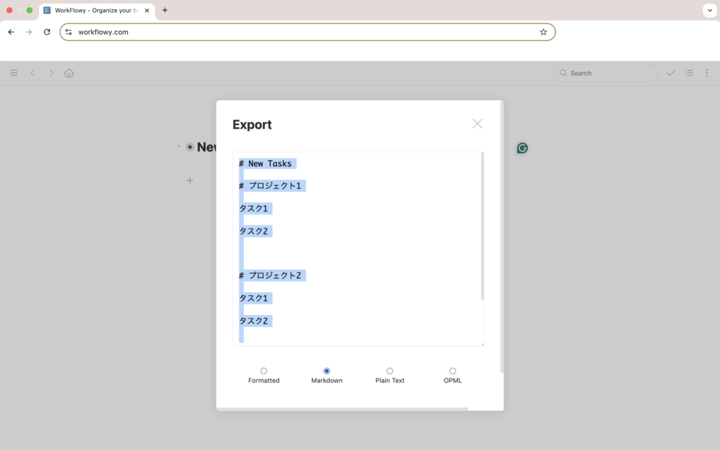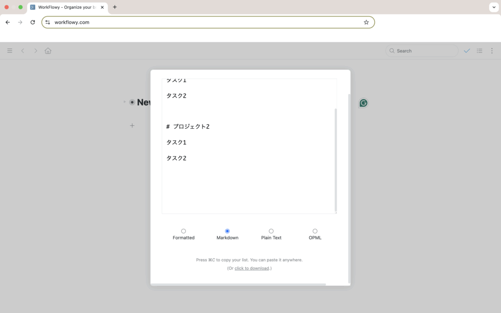 - 「Formatted(Markdown形式)」または「Plain text(テキスト形式)」を選ぶ