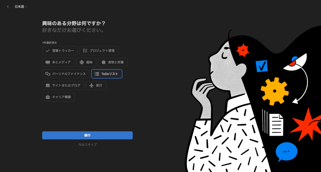 こちらは任意になりますが、どんな分野に興味があるのかを選択することができます。