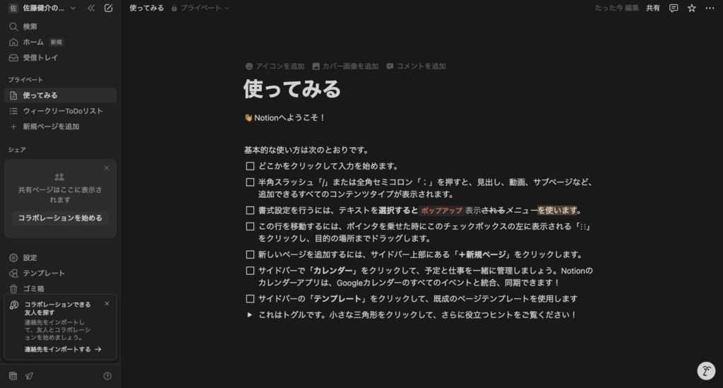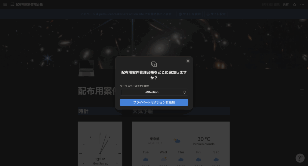 このような画面が表示されるので、ご自身のNotionのプライベートセクションに追加してください。