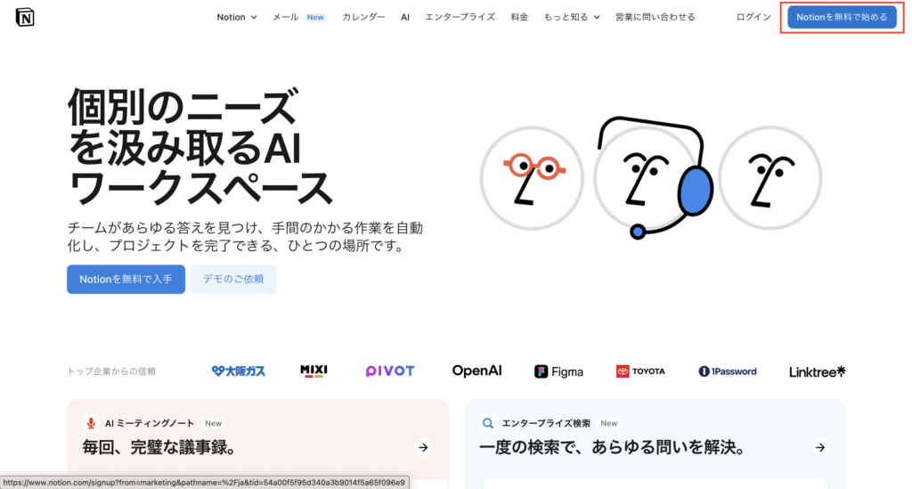 1.Notionのアカウントを持っていない人はアカウント登録が必要です。