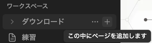 「+」にカーソルを合わせると「この中にページを追加します」と表示されるのでクリック